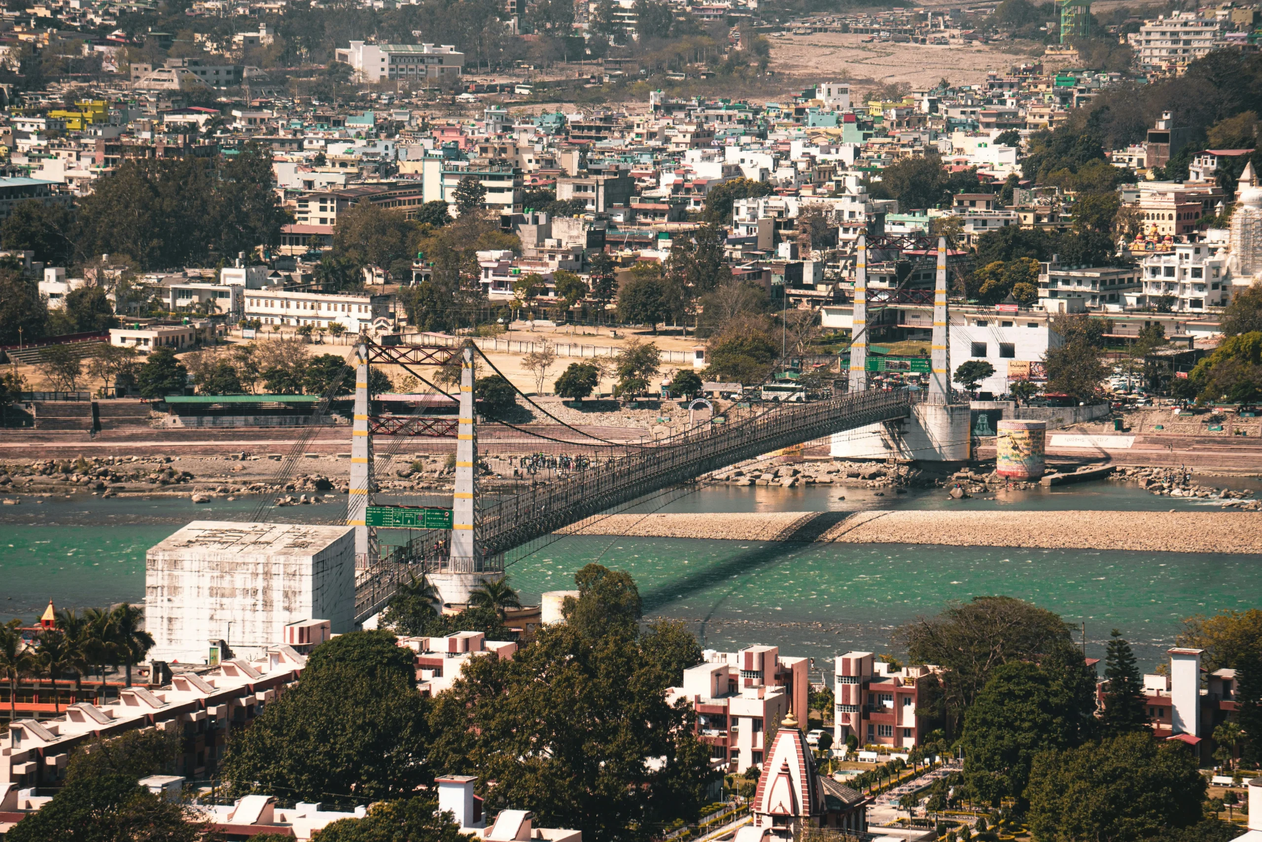 Walk across the iconic Ram Jhula and Lakshman Jhula suspension bridges.