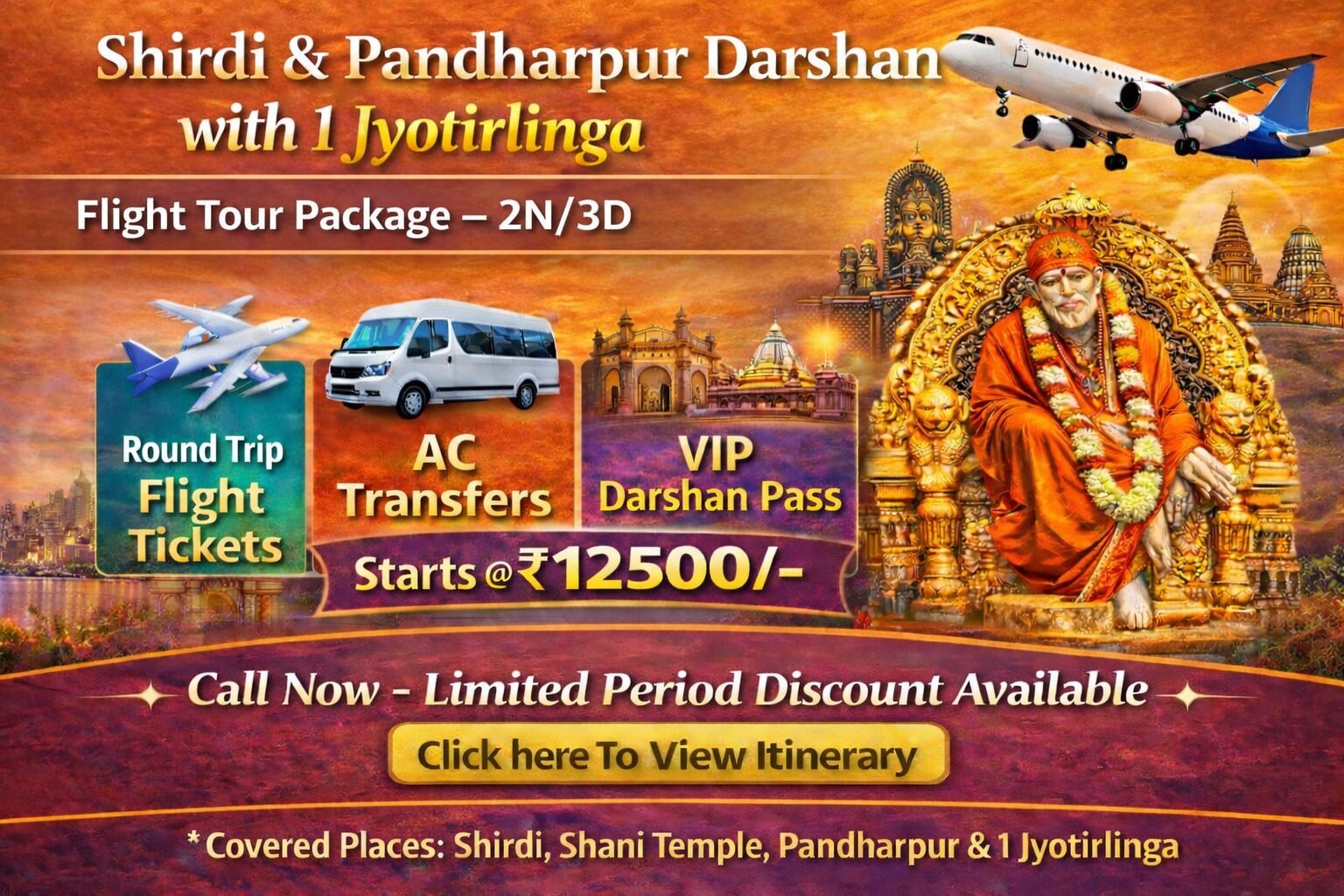 Destinations Covered: Pandharpur, Shirdi, Shani Shingnapur, Mahaganpati, Nashik / Aurangabad